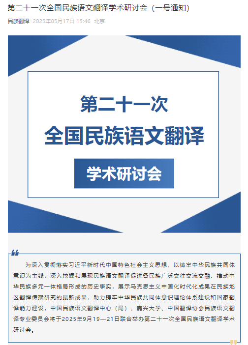 第二十一次全国民族语文翻译学术研讨会(一号通知)