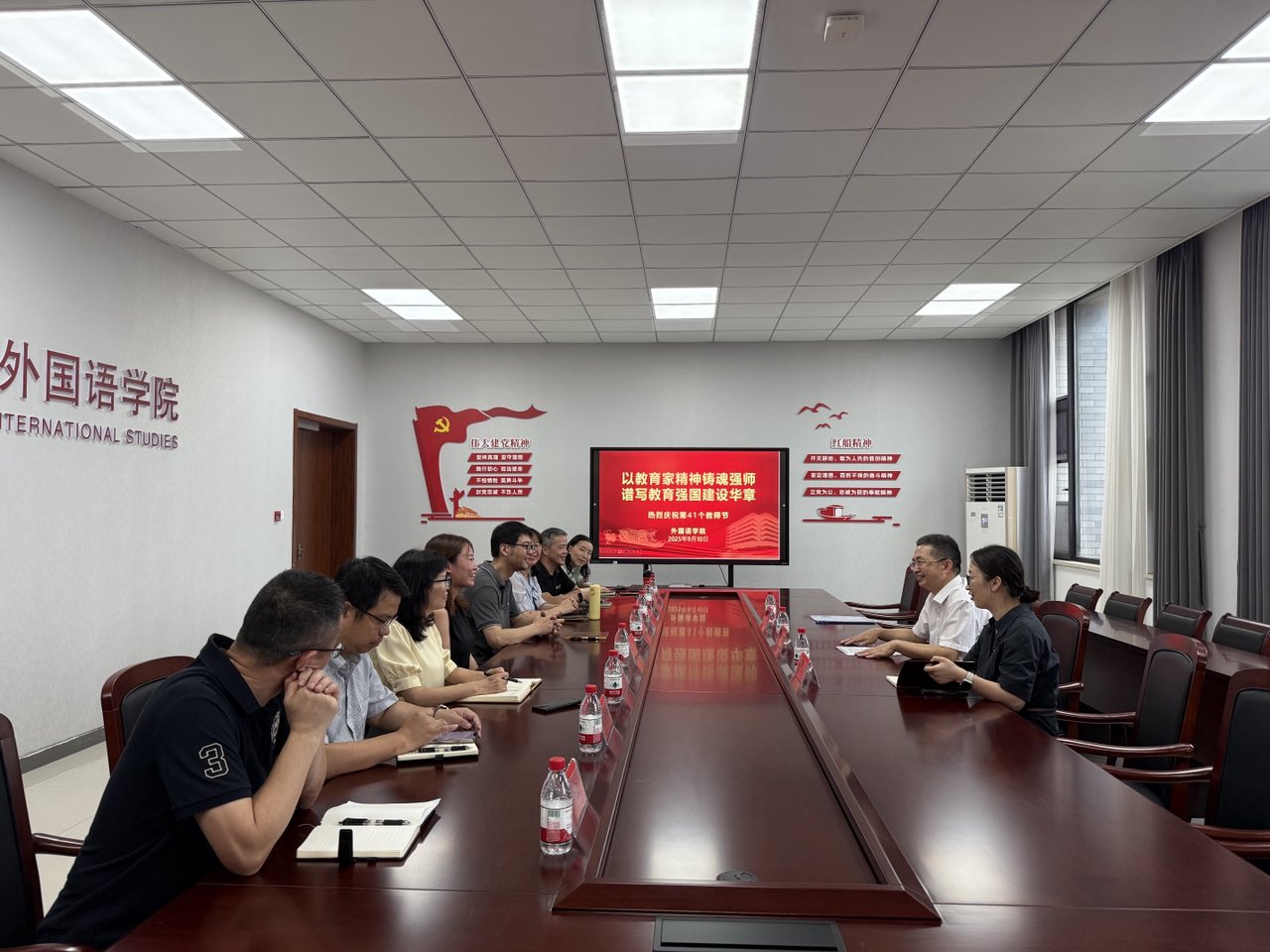 为庆祝第41个教师节,9月10日上午,校党委委员、纪委书记、省监委驻嘉兴大学监察专员陈新友一行莅临外国语学院慰问教师代表。学院党政班子成员和教师代表参加座谈会。