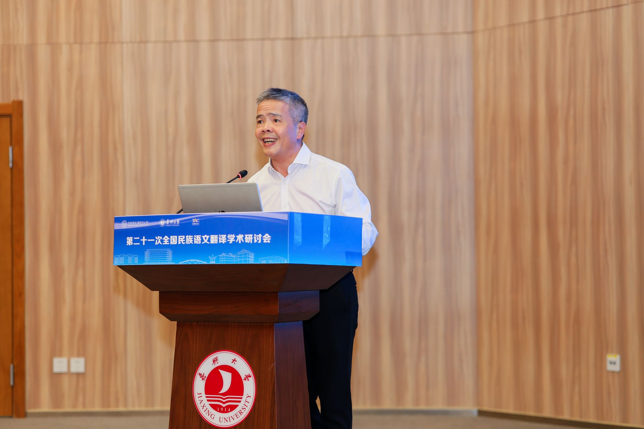 会上,中央党史和文献研究院第六研究部副主任、译审刘亮,中国社会科学院大学二级教授、博士生导师阿地里·居玛吐尔地,河北师范大学外国语学院二级教授、博士生导师李正栓,中国民族语文翻译中心(局)蒙古语文室主任、译审哈森聚焦“马克思主义中国化时代化成果的民族语文翻译与传播”作主旨报告。中国海洋大学外国语学院教授、博士生导师任东升,西南民族大学外国语言文学学院副院长、教授、博士生导师魏清光,湖北民族大学外国语学院院长、教授骆贤凤,广东金融学院外文学院教授黄中习分别对主旨报告进行了点评。与会专家围绕马克思主义中国化时代化最新成果在民族地区的翻译与传播、中华民族共同体视域下的民族语文翻译研究、民族语文翻译与中国特色翻译理论体系构建研究及翻译技术研究、国家翻译能力建设中的民族语文翻译研究、中华典籍翻译传播研究等主题进行了分组研讨。