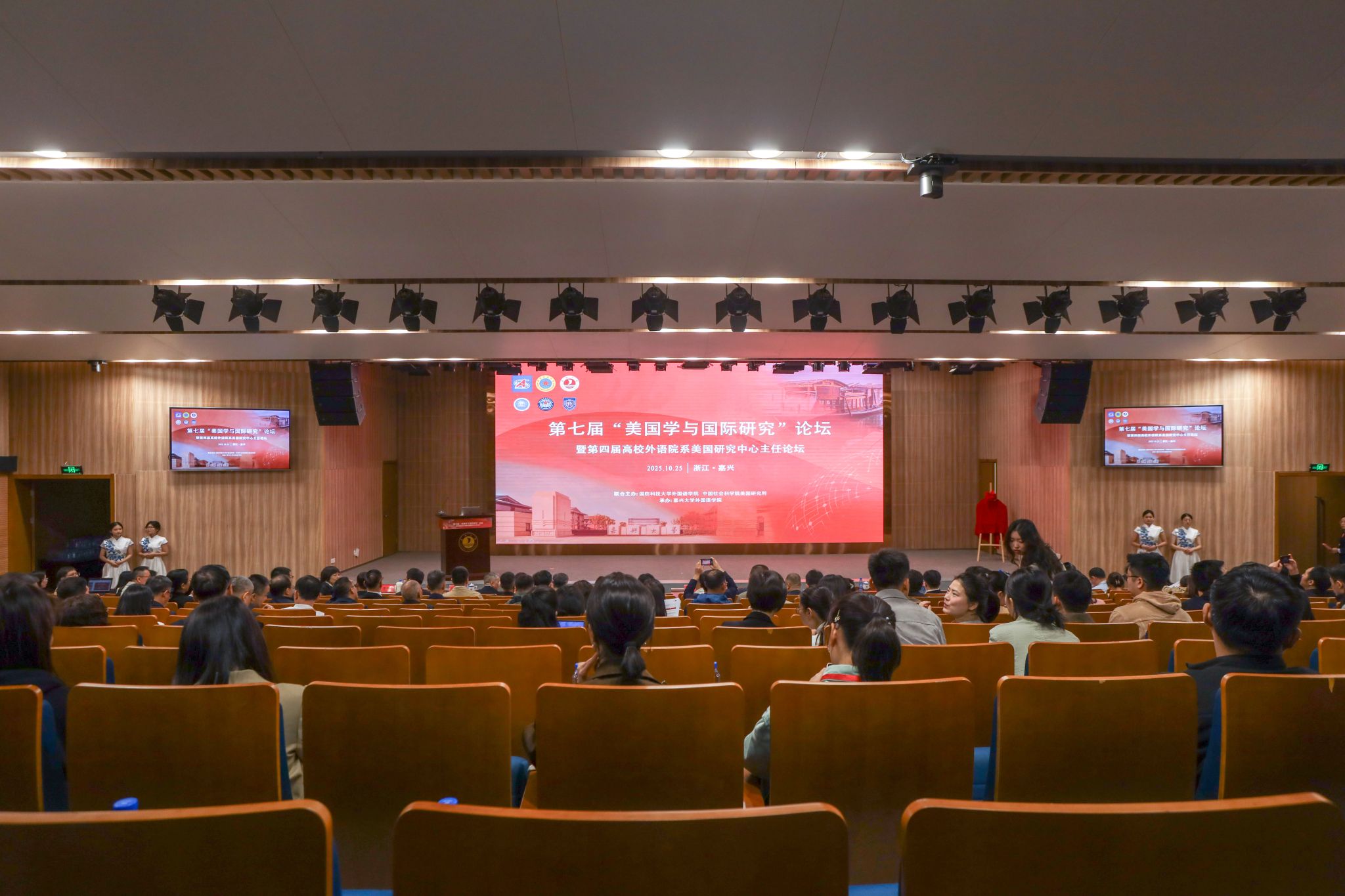 10月25日,第七届“美国学与国际研究”论坛暨第四届高校外语院系美国研究中心主任论坛在我校召开。论坛由国防科技大学外国语学院和中国社会科学院美国研究所联合主办,嘉兴大学外国语学院承办。国防科技大学外国语学院美国研究中心主任王波教授、中国社会科学院美国研究所副所长袁征研究员出席开幕式并致辞,中共嘉兴市委常委、秘书长沈雨祥出席开幕式。校党委书记沈希致辞,校党委委员、副校长於建明主持开幕式。